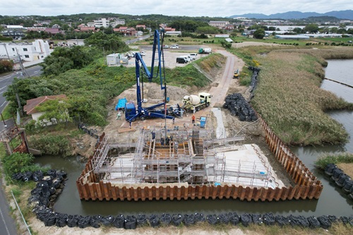 工事の施工上留意した事は、地盤改良工において施工機械が安全に施工できる施工基面の確保と、一部護岸工が神西湖湖面以下となるので、施工が可能な仮設計画の立案でした。