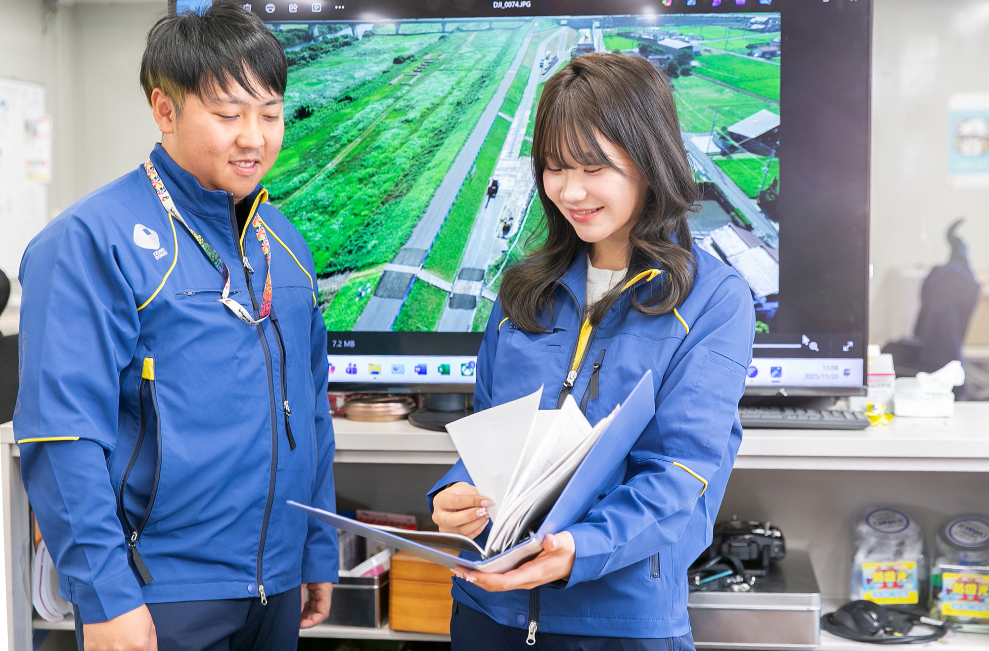 建設現場の安全管理や品質・出来形の管理を通して、建設会社として最優先すべき、“全員が無事に帰る現場づくり”に尽力しています。